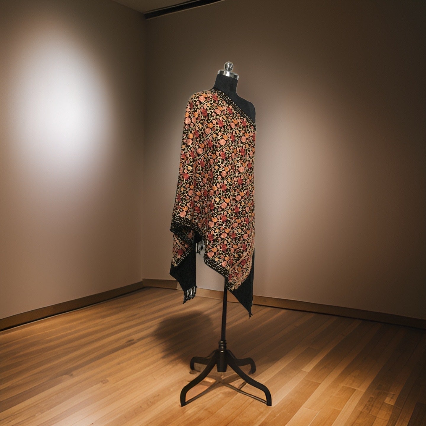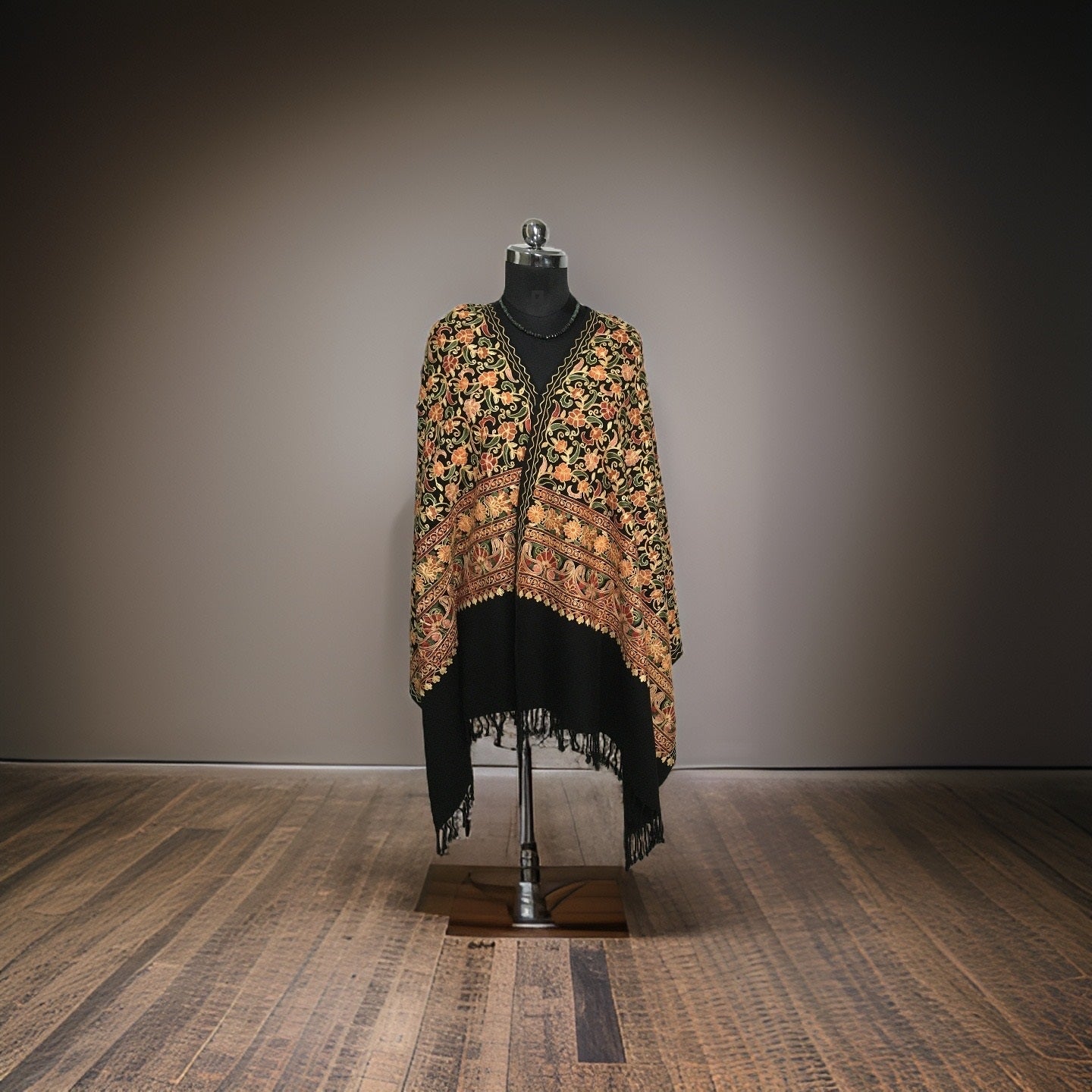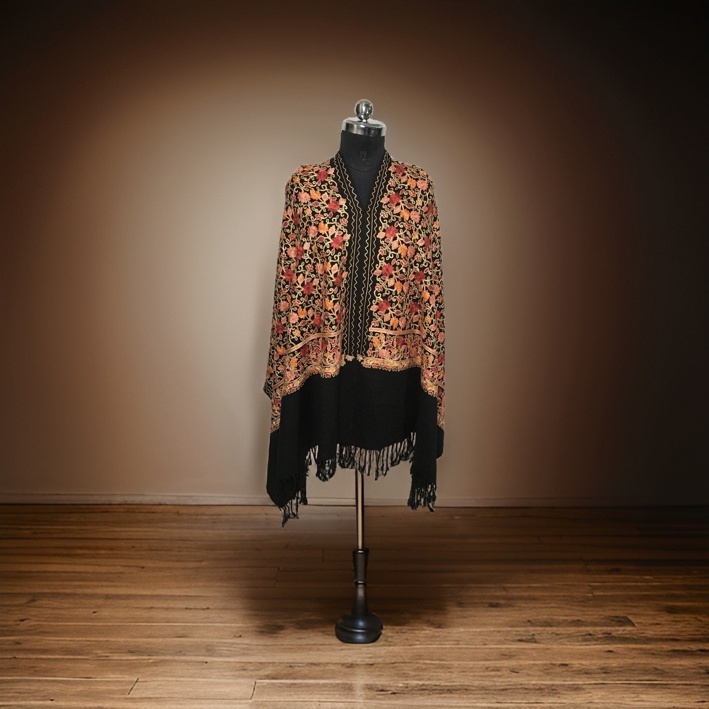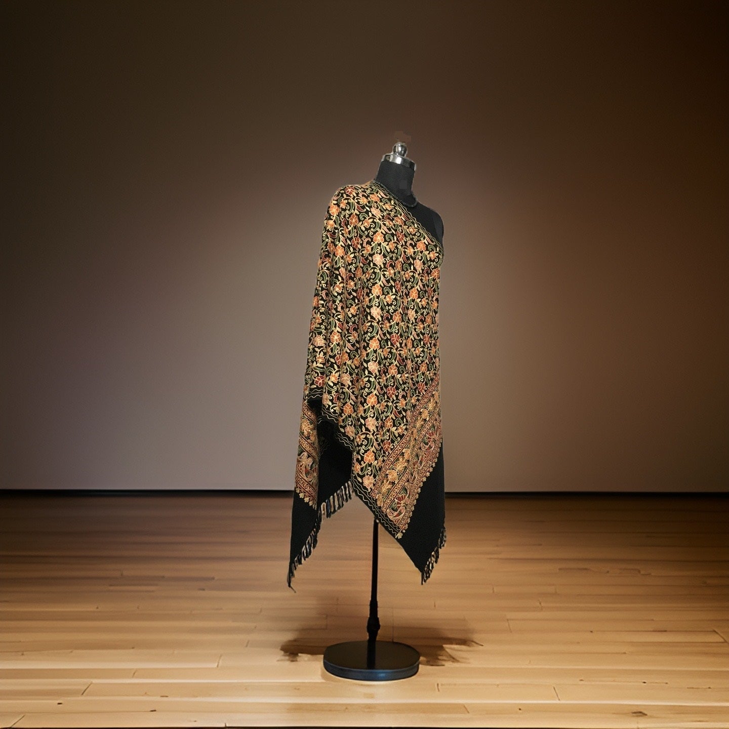 | Indulge in the rich opulence of this Woolen Stole, adorned with heavy floral embroidery. Crafted with luxurious soft wool, this stole brings warmth and sophistication to any ensemble. The intricate and vibrant floral embroidery adds an element of whimsy and elegance to your outfit, making it perfect for special occasions. Whether you wear it draped over your shoulders or wrapped around your neck, this stole will be sure to turn heads and make a statement. |