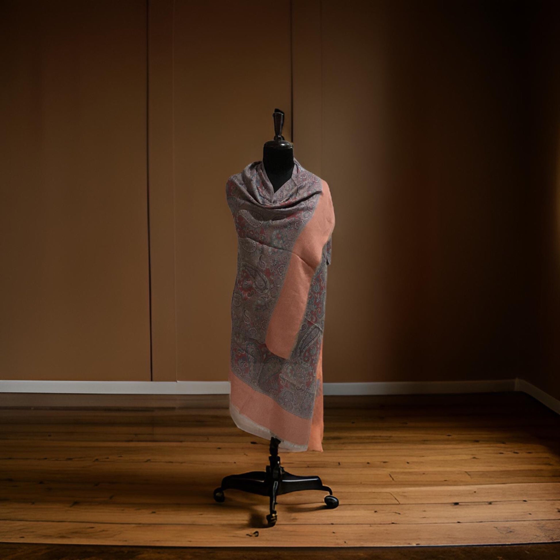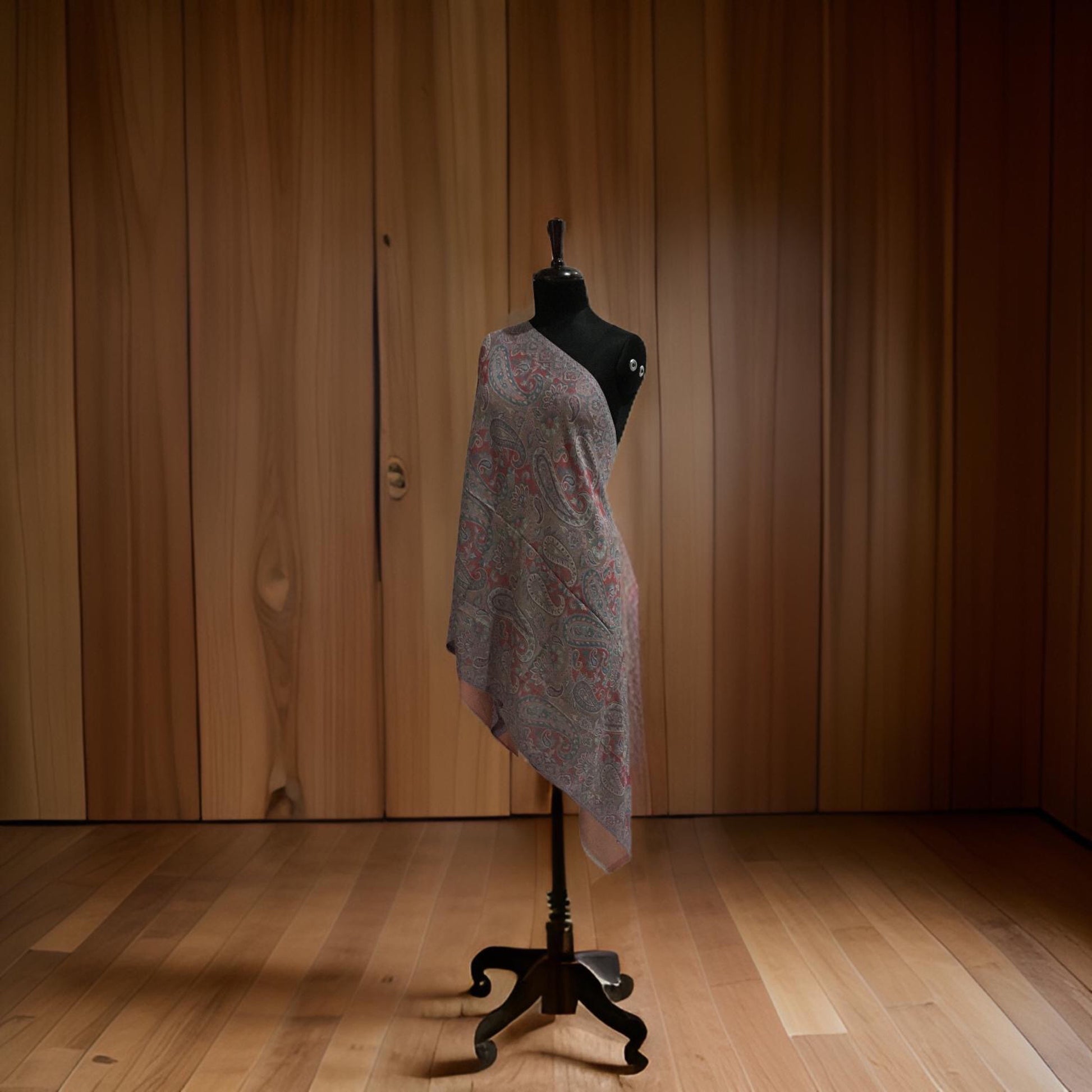Introducing our elegant Paisley Jaal Stole. This exquisite accessory features an intricate paisley jaal pattern, showcasing detailed craftsmanship and luxurious style. Perfect for adding a touch of timeless elegance to any outfit, it offers a luxurious drape and unmatched softness.